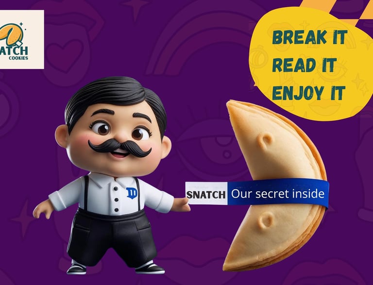 With Snatch’s Co-Branding Program, your brand gets customised fortune cookies designed to spark emotion, build loyalty, and create a memorable connection with every customer. Add your logo, your message, and your brand personality — we handle the rest.